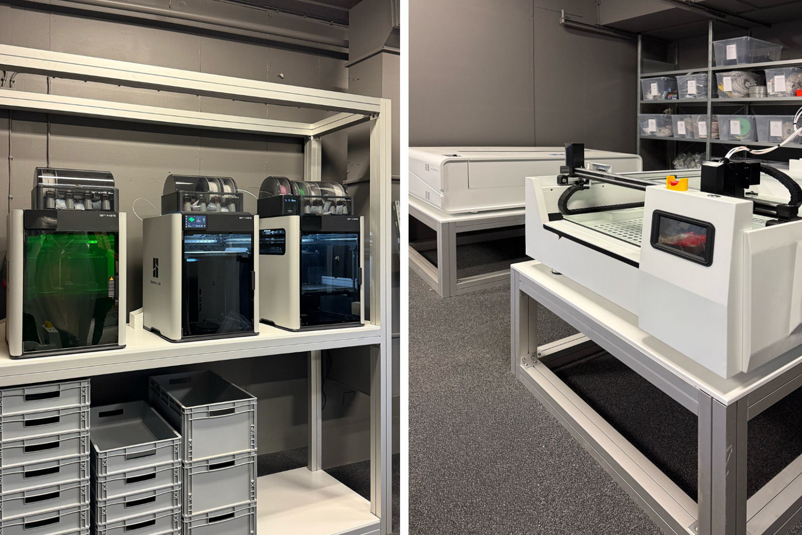 Maskinparken med bland annat storformatsskrivare, skärbord, laserskärning, CNC-fräs och snickeriutrustning har sedan i höstas fått sällskap av ett antal 3D-skrivare.