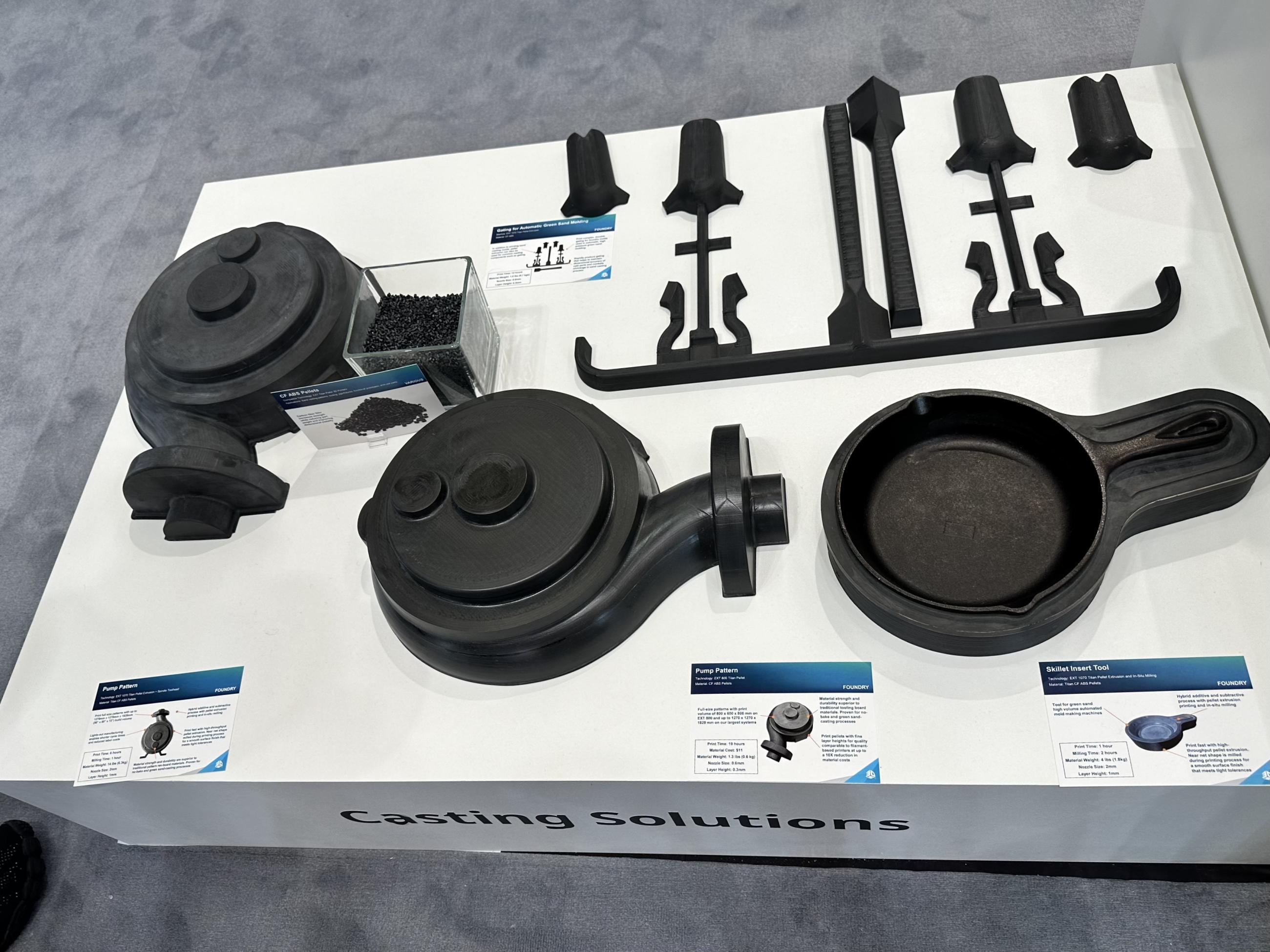 3DSystems visade exempel på 3D-printade verktyg för termoformning, 3D-printade formar för sandgjutning liksom produktionsdetaljer i riktigt tuffa material.