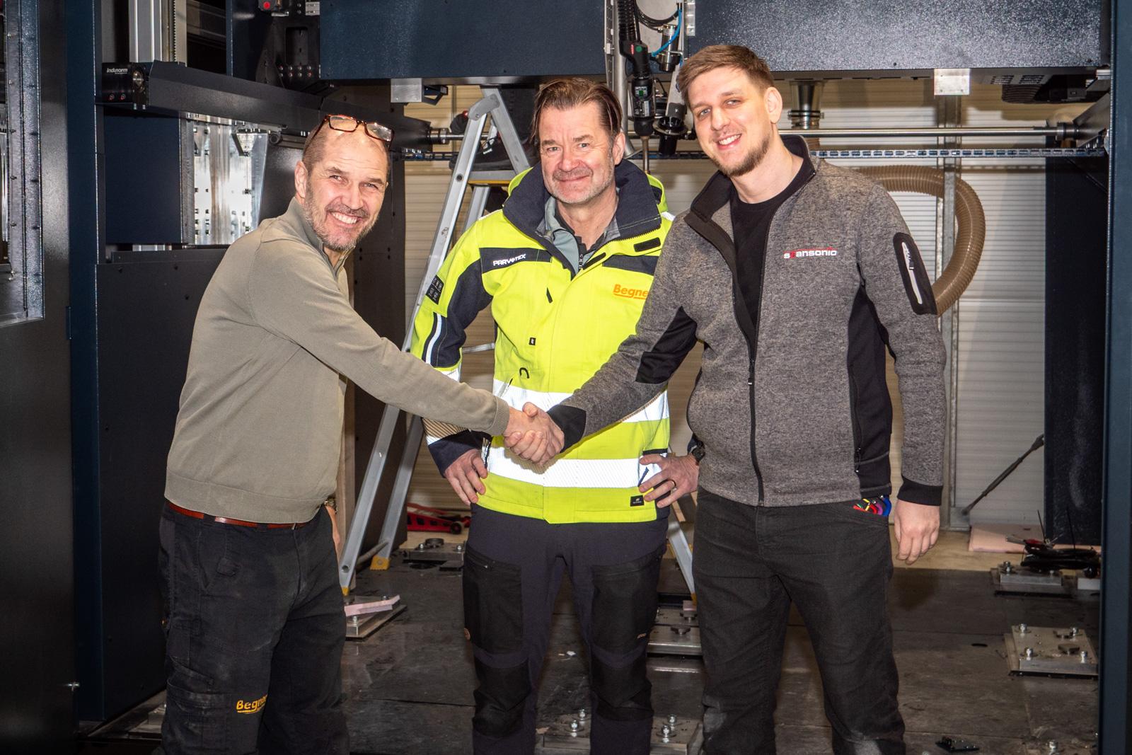 I början av året installerades en Gefertec arc80X hos Begner Agenturer. På bilden från vänster: Patrik Fredriksson, Begner Agenturer, Peter Ekholm, Begner Agenturer och Remo Schoof, montör från Gefertec.