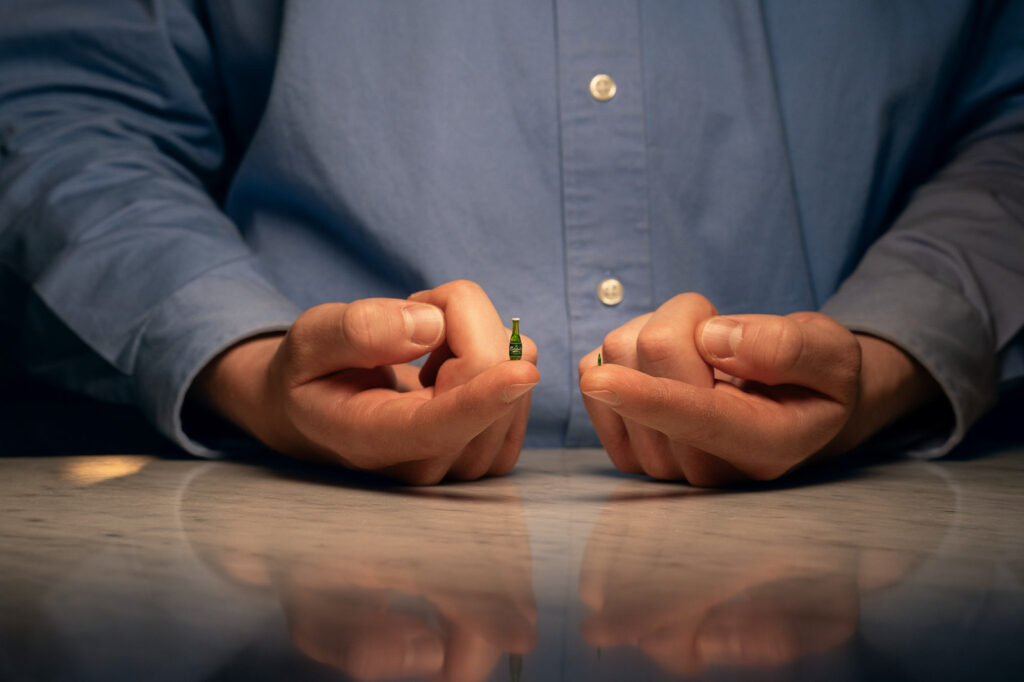 Den nya världens minsta öl är en tredjedel så stor som Carlsbergs föregångare. Flaskans höjd är fyra millimeter, rymmer 0,00001057 centiliter alkoholfri öl, och är liten som ett sesamfrö. Detta innebär att det skulle krävas cirka 5,37 miljoner flaskor för att fylla en pint. Både alkoholfritt och i den storleken talar verkligen för måttfullhet.