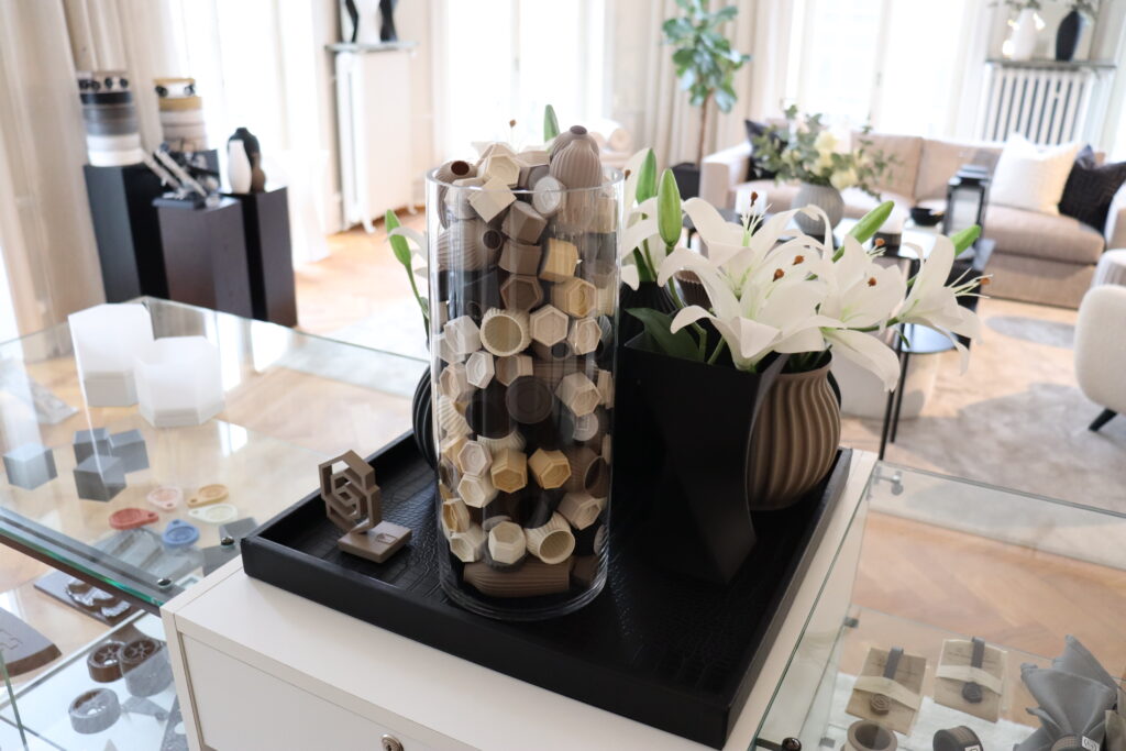 Sedan starten har Style Collection Home byggt på med fler produkter, bland annat ljushållare, brickor och vaser i olika storlekar. De printas med FDM-skrivare och de egna filamenten av återvunnen plast. De mindre varianterna printas i skrivare från Prusa Research och de större i Modix-skrivare.