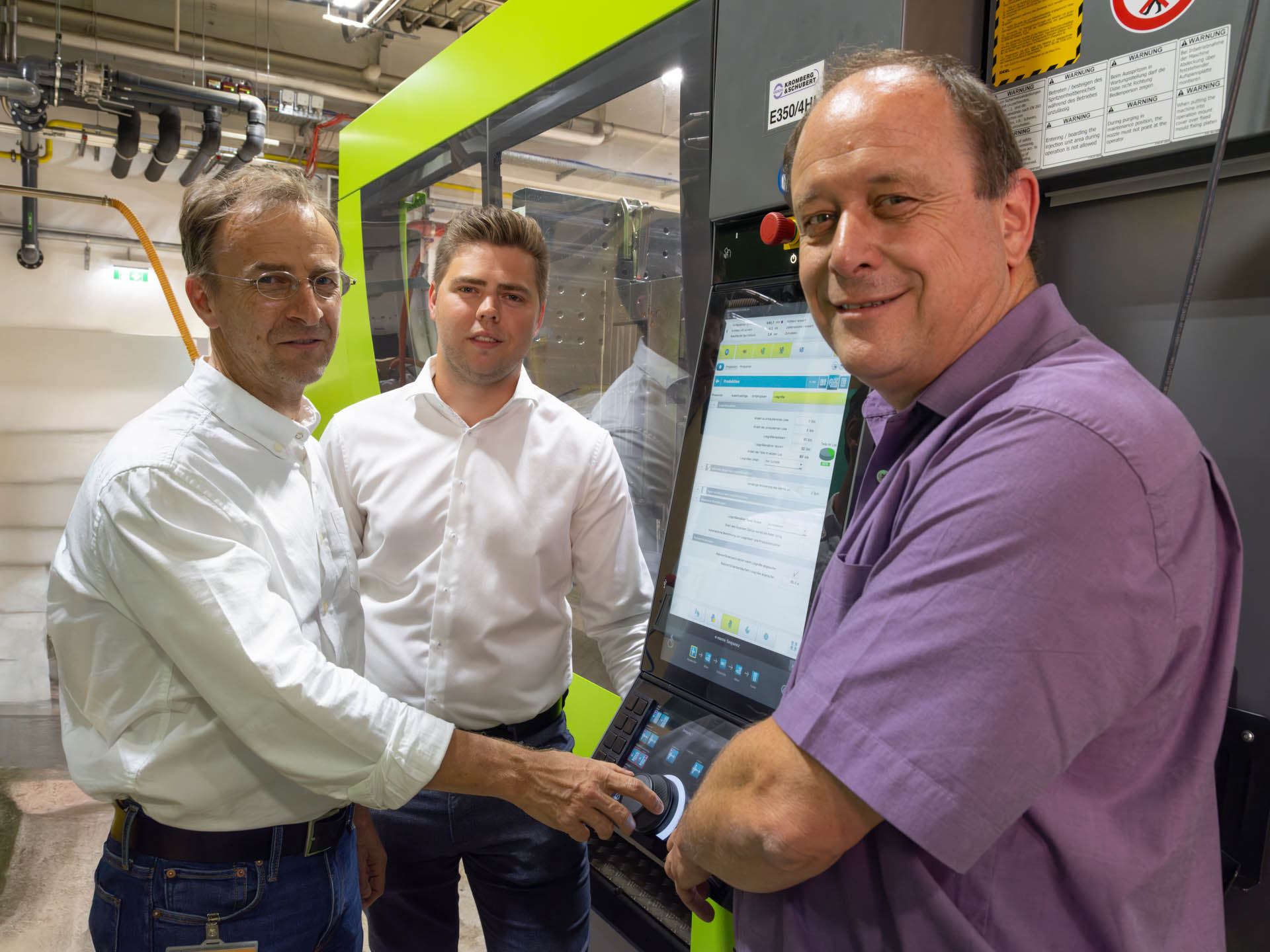 De haptiska kontrollknapparna är ett stort plus, konstaterar fr. v. Hannes Fritz, ENGEL; Lukas Kimbauer, Kromberg & Schubert och Werner Sucharda, ENGEL.