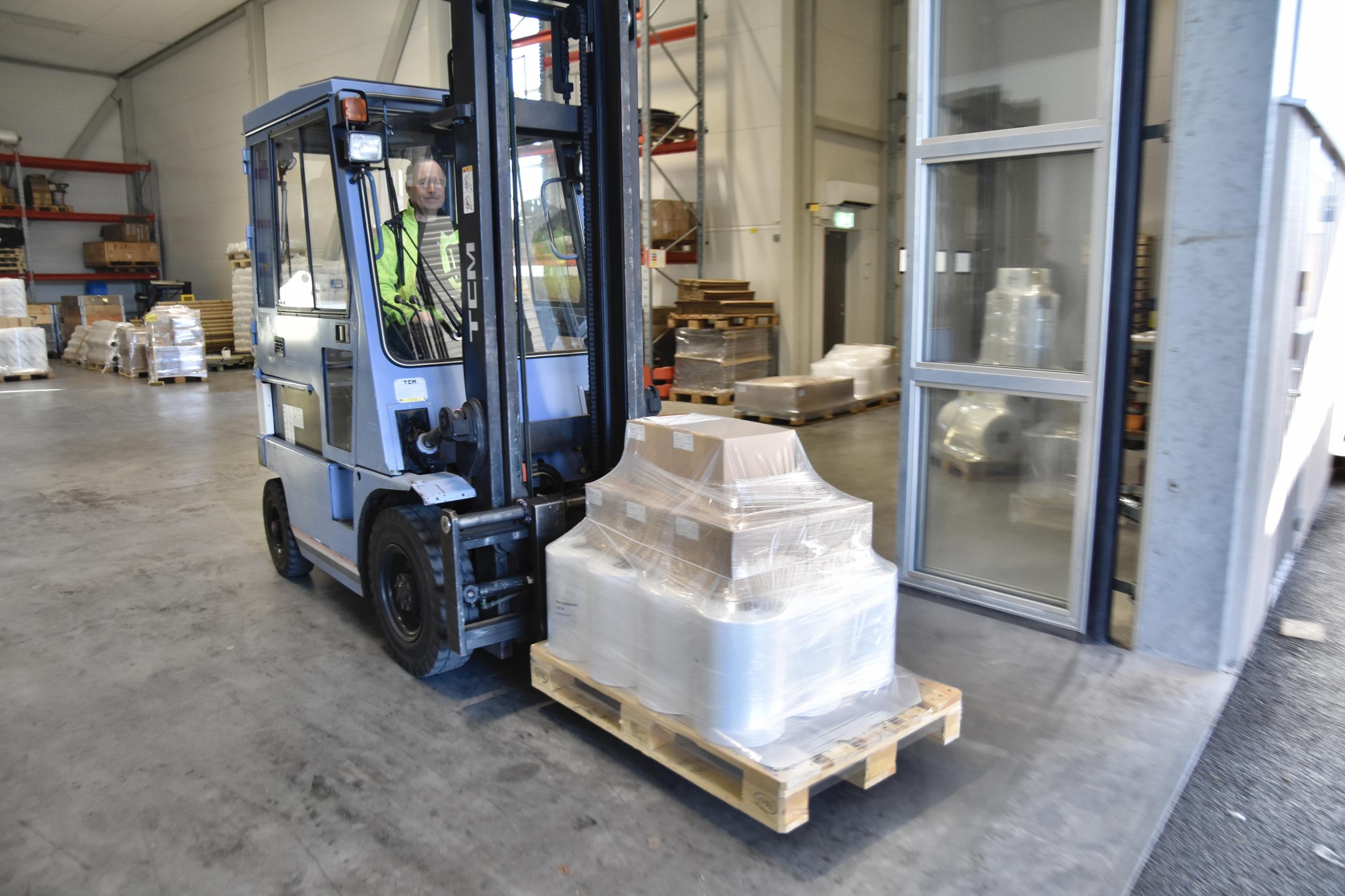 – Jag har jobbat i produktionen tidigare men ville inte fortsätta med det längre, så här fick jag i stället jobb på utlastningen. Det är riktigt roligt och något helt annat att hålla koll på pallar, fraktsedlar och sex-sju olika speditörer, säger Gert. Även utlastningen är helt ny efter tillbygget.