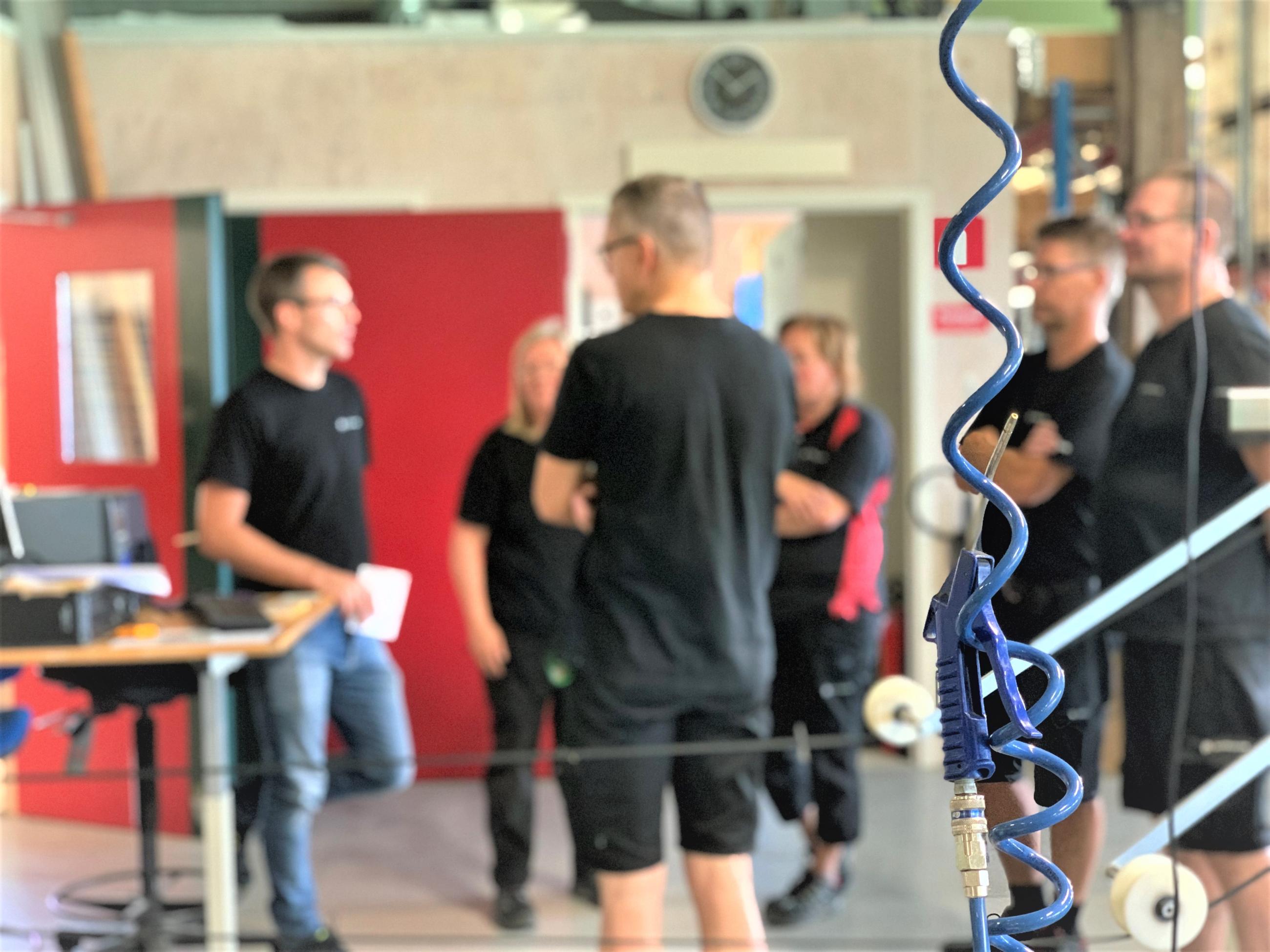 Under ett mässbesök i Stockholm fick de se en extruder, berättar Anders.