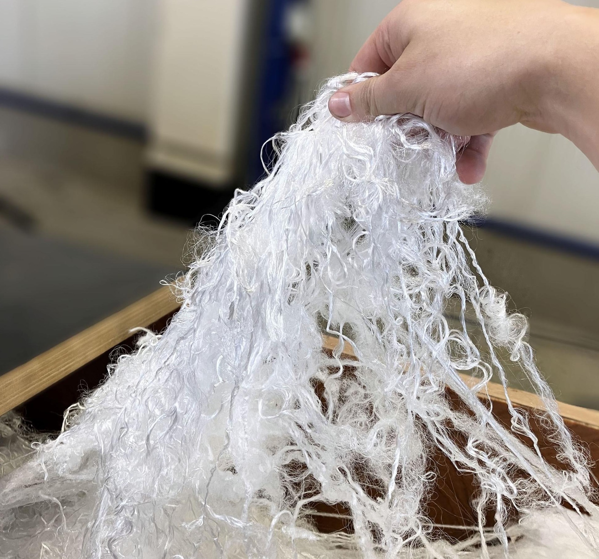 Nonwoven-spill från hygienindustrin och polyamidfiber från produktion av kläder och mattor blir till ny råvara hos Rondo Plast.