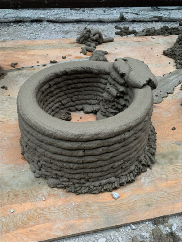 ConcretePrints första genomförda betongutskrift med prototypmaskinen. Foto: Patrik Lark, Xenter