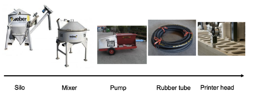 Framtiden ska bjuda på en ny produktionslinje av 3d-skrivare. En för radhus och en för villor. Processen inkluderar en rad olika moment som utveckling av utskriftsbar betong, konstruktion av olika typer av maskiner och metoder för blandning och framtagning av betong. Bilden är ett montage av foton tagna från nätet för att visa processen.
