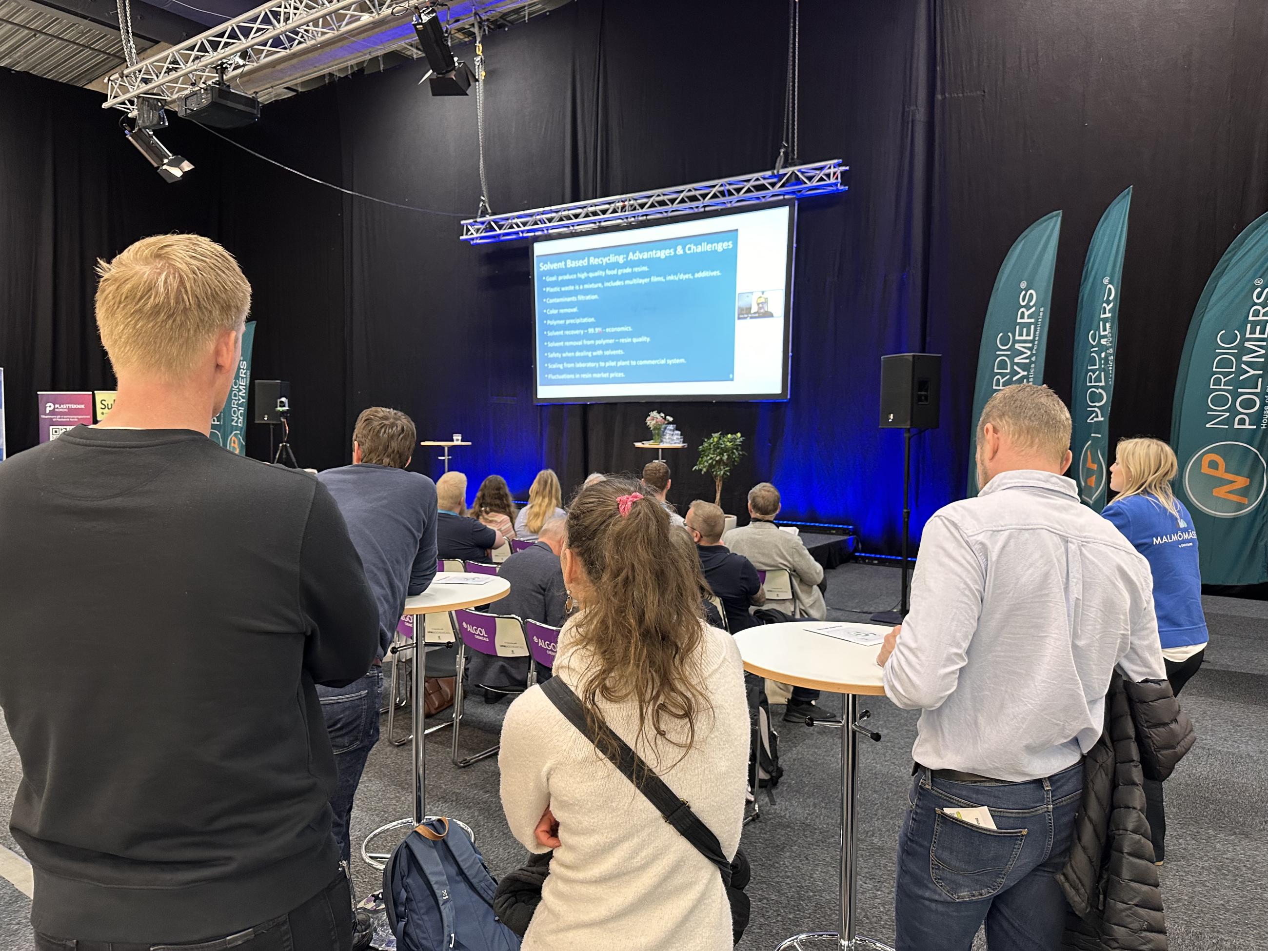 Dr Karlheinz Hausmann, Schweiz, satte sökarglaset på PPWR genom att lyfta både regelverkets utmaningar och möjligheter genom D4R, Design for Recyclability. Och Mattias Philipsson, vd för Svensk Plaståtervinning, talade inför en stor mängd intresserade åhörare om tillgången på återvunnen råvara utifrån situationen i EU idag och vad som kommer att krävas framåt, med särskilt fokus på Norden och Sverige.