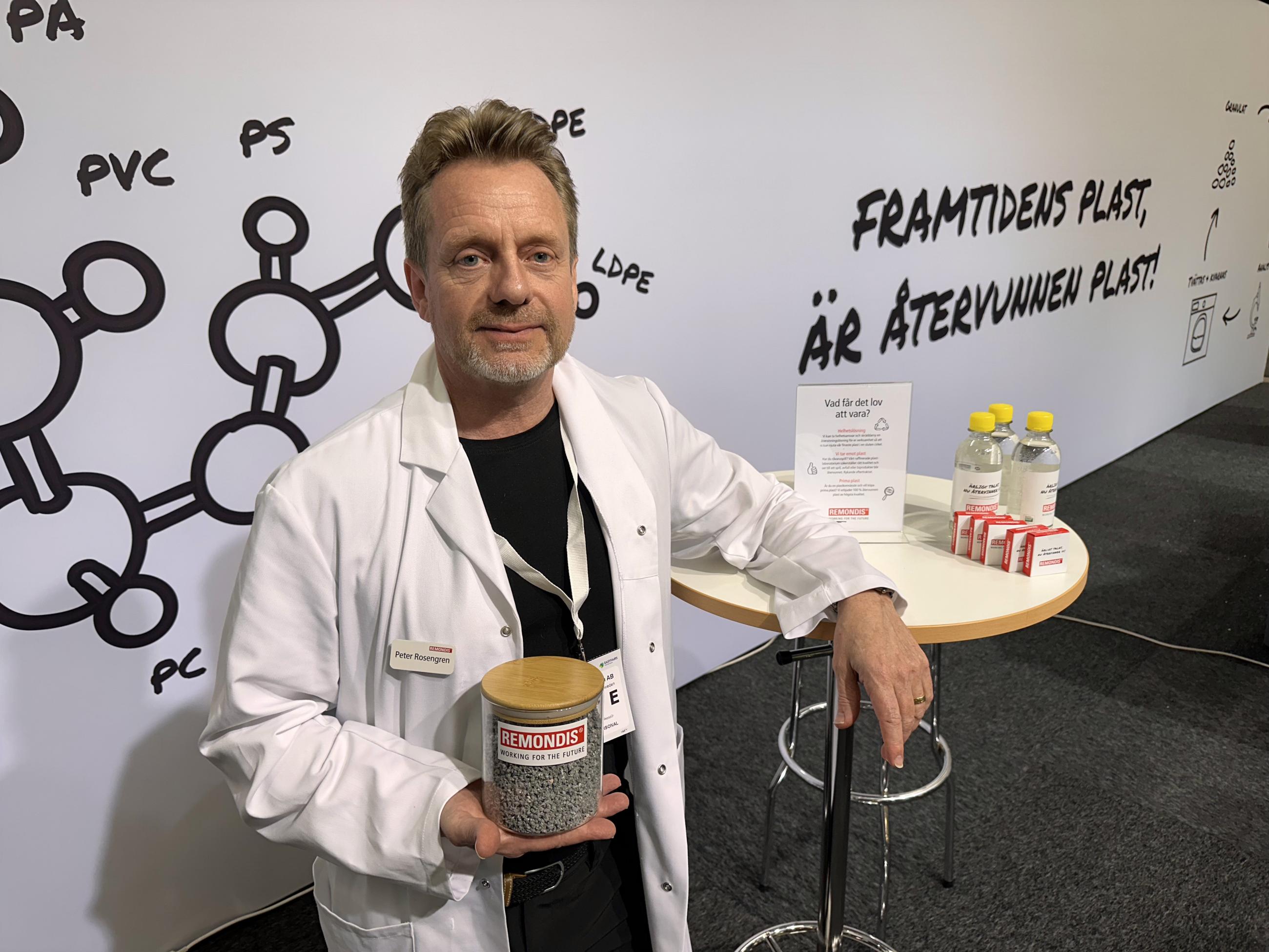 Montern och labbrockarna hos Remondis Sweden drar blickarna till sig. ”Framtidens plast