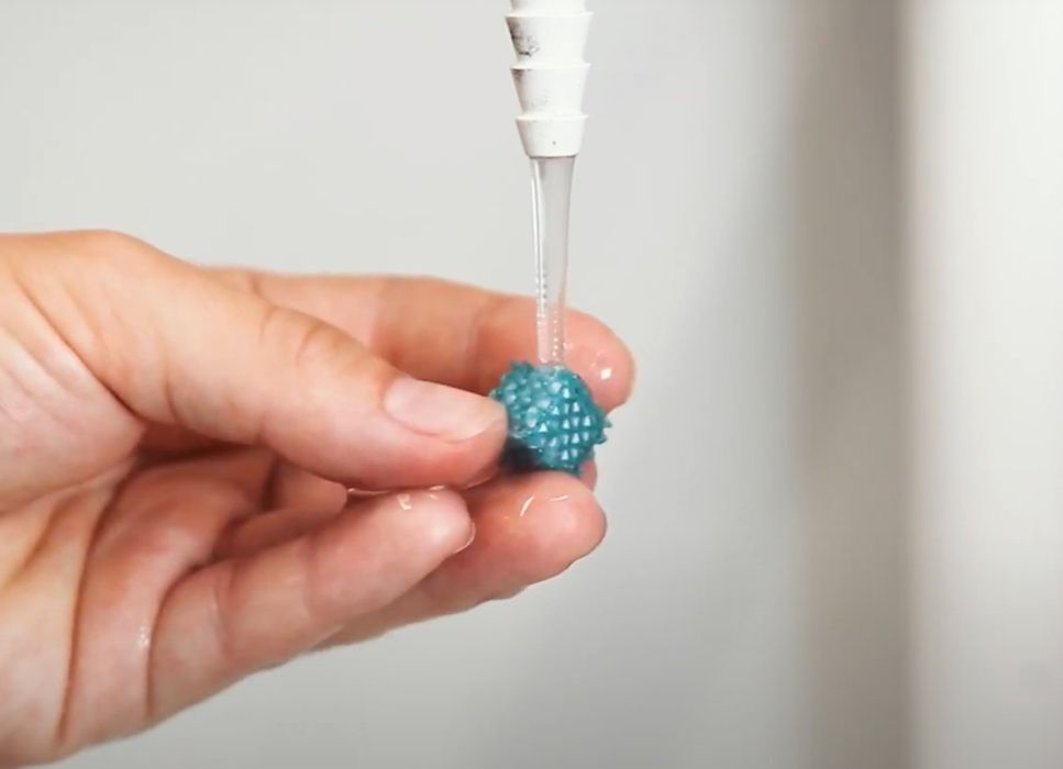 Upplösning av en 3D-printad saltform med vatten. Foto: Sallea/ETH Zürich