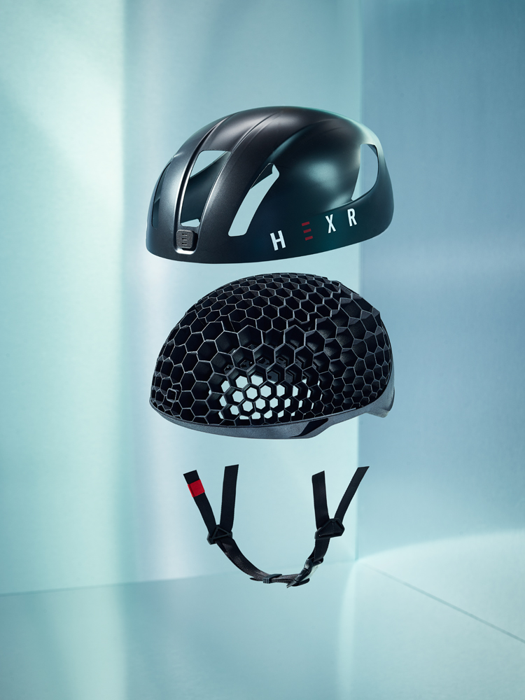 Londonbaserade HEXR producerar 3d-printade cykelhjälmar som utformas efter individens huvud. Företaget, som använder EOS 3d-skrivarteknik, ska enligt HEXR:s vd Markus Glasser betyda säkrare cykelhjälmar.